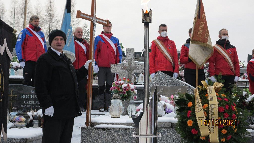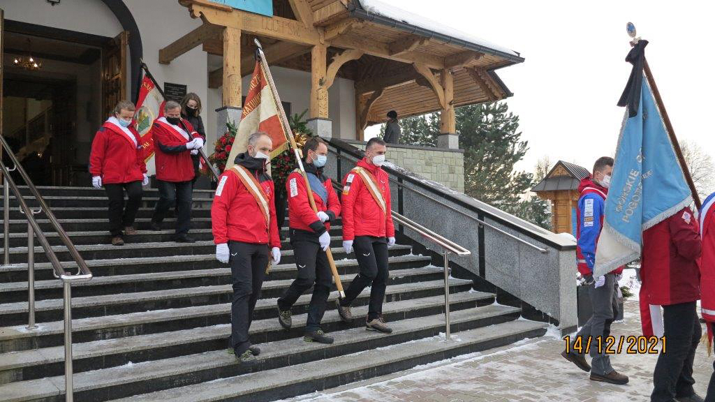 W uroczystościach pogrzebowych udział wzięli Koledzy z Sekcji Operacyjnych Grupy oraz poczty sztandarowe Zarządu GOPR Zakopane, Grupy Podhalańskiej GOPR i PTTK O/Rabka.