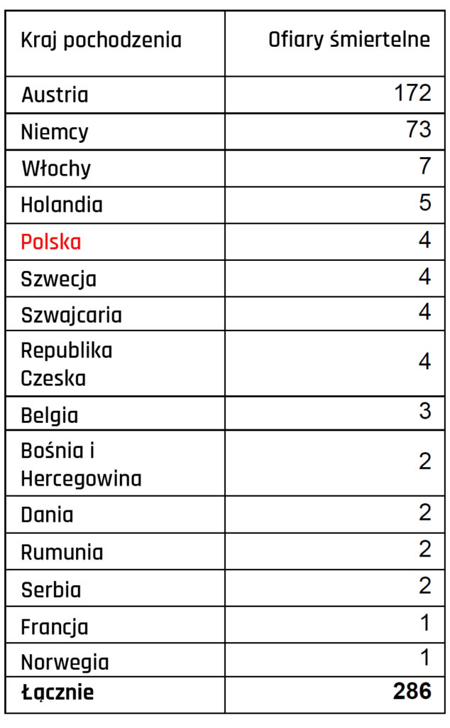 • oraz w wyniku samobójstw w rejonie alpejskim – 34 ofiary.