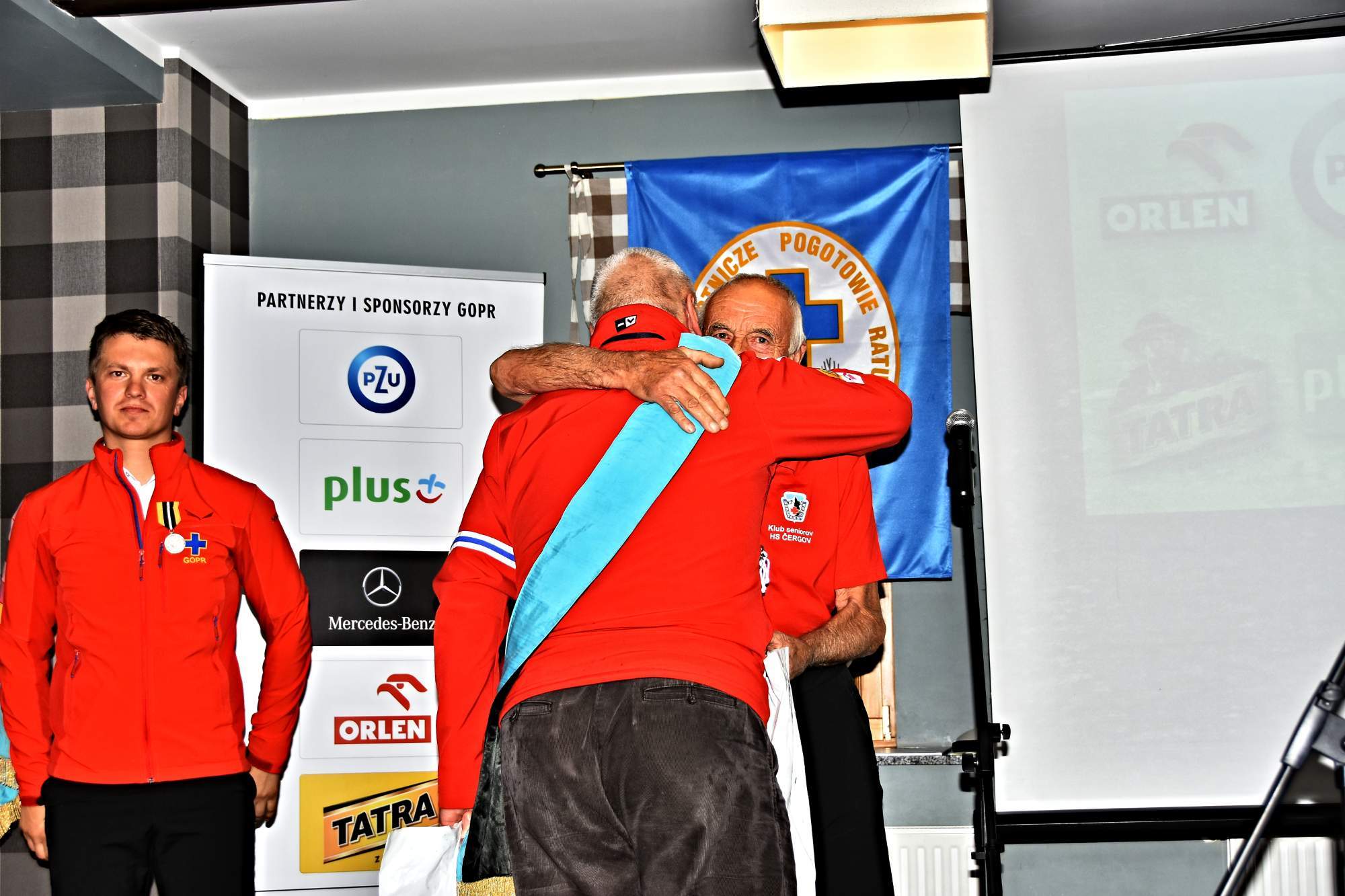 V sobotu ráno o 04.00 hod. sme vycestovali autom za našími kamarátmi z GOPR na ich slávnosť do Szklárskej Poreby v oblasti Krkonoš. Pozval nás Ryšiek Jedrecki, s ktorým sme a zoznámili na podobnej akcii GOPR v Krynici. Zoznámil Nás môj dlhoročný priateľ z GOPR z Gorlic Ryszard Nowák. 650 kilometrov v dáždi nebolo moc prijemných a na Goprovku v Szklárskej Porebe sme dorazili o 14.00 hodine. Cestovali sme traja z Klubu seniorov Slovenska. Marian Oberhauser z Nízkych Tatier, Tono Adamčik a Braňo Potoček z KS Čergov.