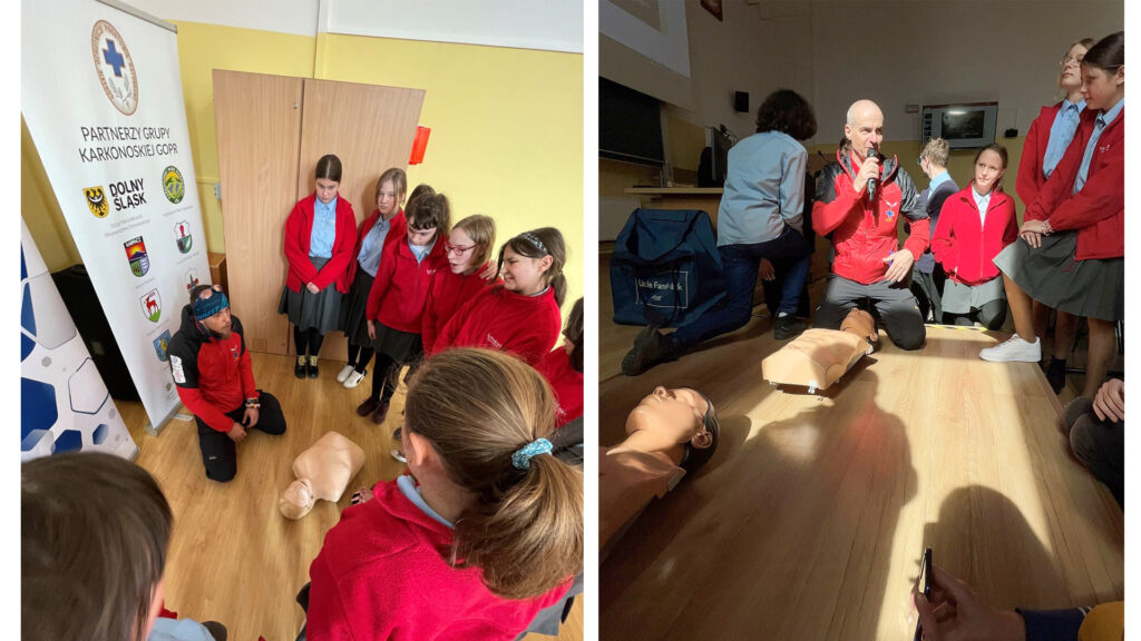 Uczniowie dowiedzieli się jak należy przygotować się do wyjścia w góry, jak reagować w sytuacji gdy ktoś potrzebuje tam pomocy, mieli również okazję przećwiczyć podstawy resuscytacji krążeniowo – oddechowej i obejrzeć sprzęt ratowniczy Grupy Karkonoskiej GOPR.