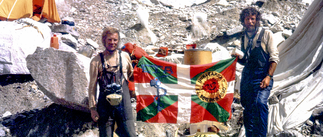 Przy okazji wysłuchiwania telewizyjnych wiadomości naszły mnie wspomnienia ściśle związane z flagą ETA. W czasie wiosennej wyprawy na Mount Everest, za sąsiadów w bazie mieliśmy dwie wyprawy hiszpańskie; Basków i Katalończyków. Baskowie szli na Everest, Katalończycy na Lhotse. My, Polacy, z obiema wyprawami mieliśmy kontakt dobry, Hiszpanie między sobą niekoniecznie. Odwiedzaliśmy się, wymieniali żywność, kabanosy na oliwki, itp.