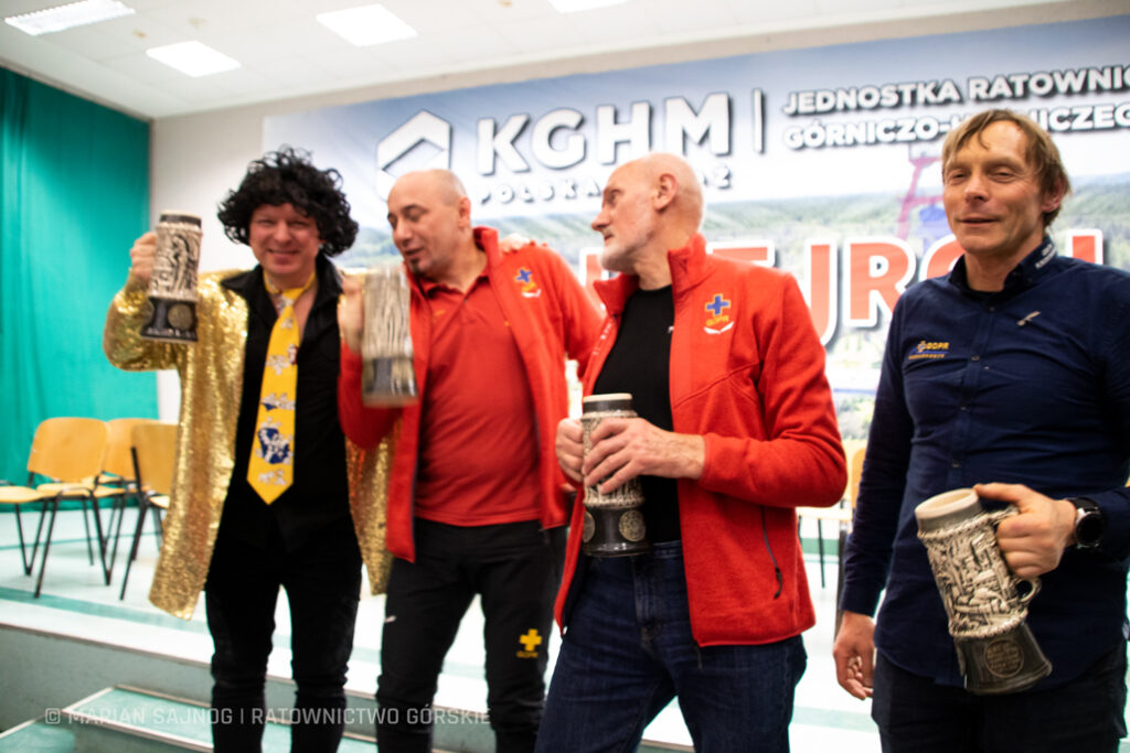 Od co najmniej dwóch dekad trwa współpraca ratowników Grupy Karkonoskiej GOPR z JRGH-KGHM Sobin, a głównie z sekcją wysokościową ratowników górniczych. Współpraca ta przeniosła się również na sympatyczne kontakty osobiste, co wyraźnie dało się odczuć przy powitaniu Alka Chruściela i Romka Gąsiora na kolejnej karczmie piwnej, czyli święcie ratowników górniczych.