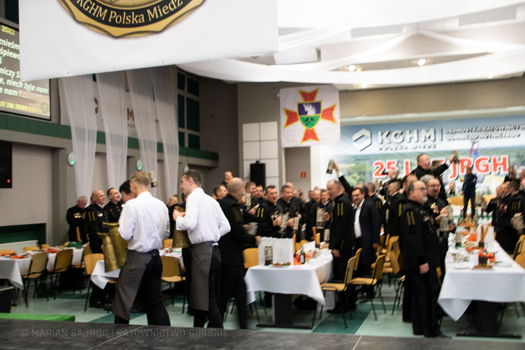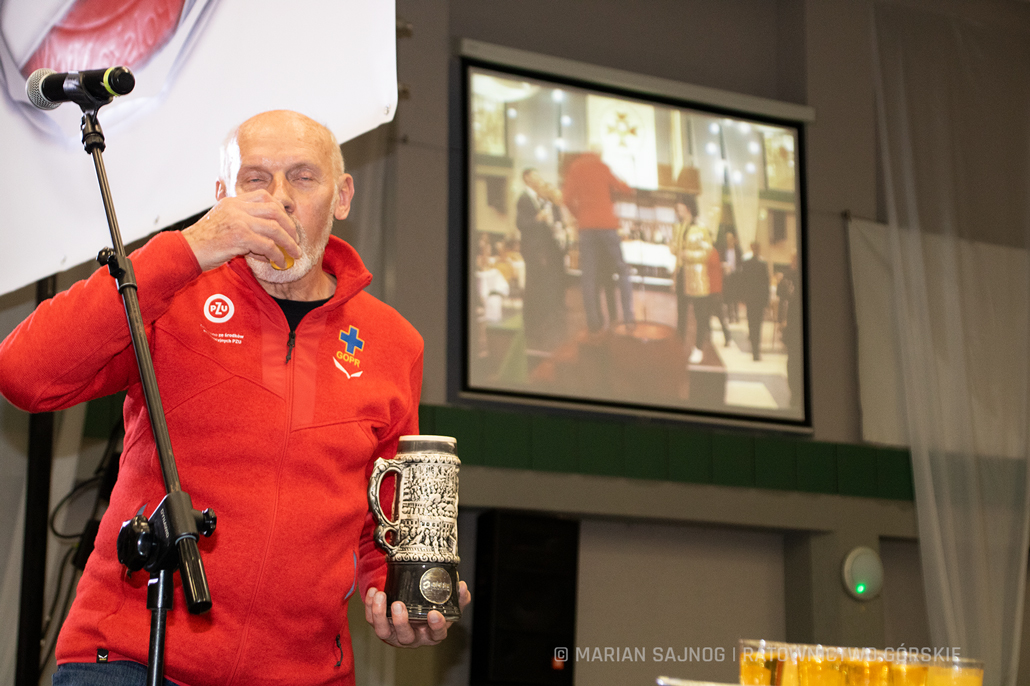 Od co najmniej dwóch dekad trwa współpraca ratowników Grupy Karkonoskiej GOPR z JRGH-KGHM Sobin, a głównie z sekcją wysokościową ratowników górniczych. Współpraca ta przeniosła się również na sympatyczne kontakty osobiste, co wyraźnie dało się odczuć przy powitaniu Alka Chruściela i Romka Gąsiora na kolejnej karczmie piwnej, czyli święcie ratowników górniczych.