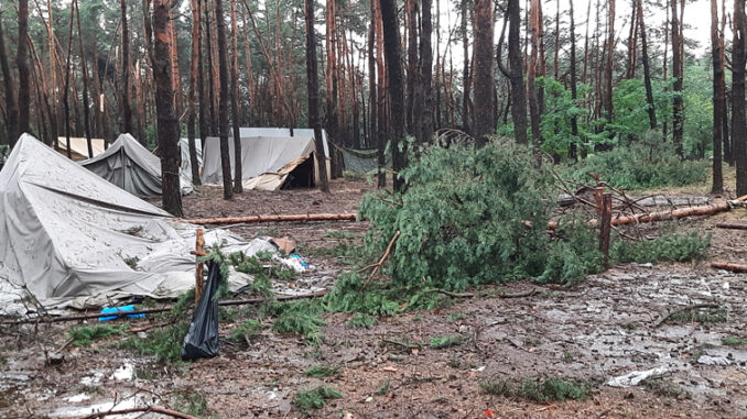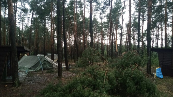 Skutki nawałnicy to poniszczone namioty, połamane drzewa na namiotach. Sytuacja wymagała natychmiastowej ewakuacji harcerzy, którą zajęła się Straż Pożarna i Policja.