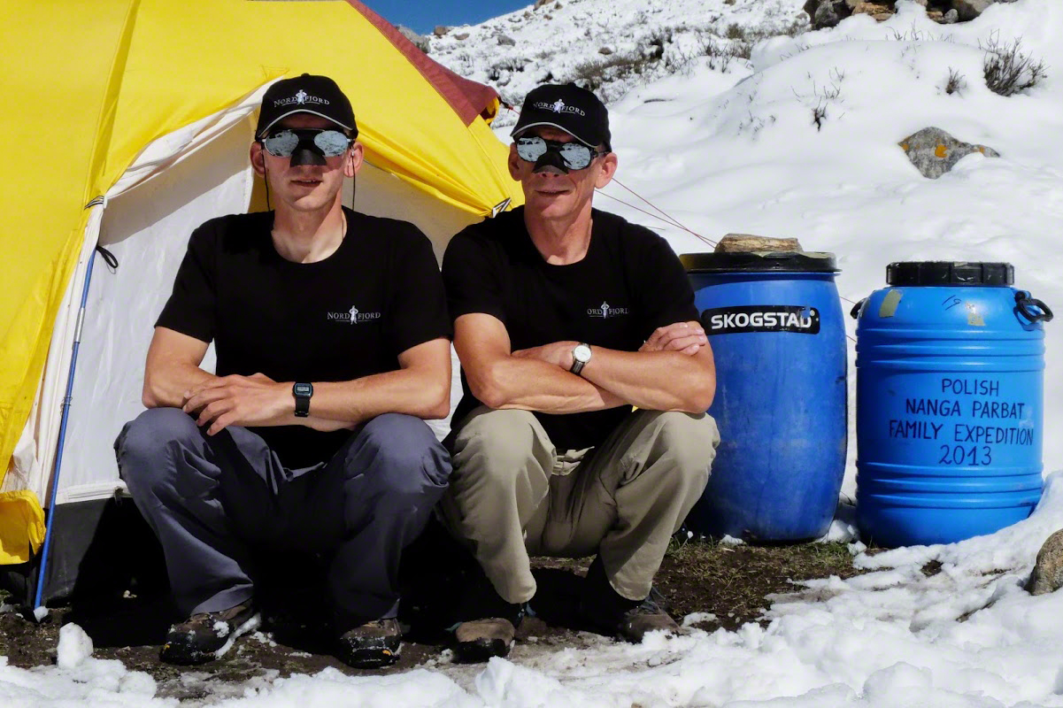 „3.6.2013 roku, Wojciech i Lech dołączyli w Islamabadzie do międzynarodowej wyprawy, by dwa dni później po 18-to godzinnej jeździe busem Karakorum Hwy dotrzeć do Chilas. W Panorama Hotel przygotowują 25 kg ładunki dla wyruszającej stąd karawany i po trzydniowym marszu docierają wraz z tragarzami do położonej na wysokości 4200 m n.p.m. bazy pod Nanga Parbat. Z niej prowadzą akcję górską – zakładają obóz I i wynoszą sprzęt niezbędny do założenia kolejnych obozów. Poręczują prawie 2-kilometrowy kuluar Löwa. 19 czerwca media obiegła informacja o zejściu lawiny ścianą Diamir, która zniszczyła 4 namioty w obozie pierwszym, na szczęście nikt nie doznał obrażeń. Wreszcie pokonują ścianę Kinshofera zamykającą kuluar Löwa i w „orlim gnieździe” zakładają obóz II. To jednak nie był koniec złej passy.