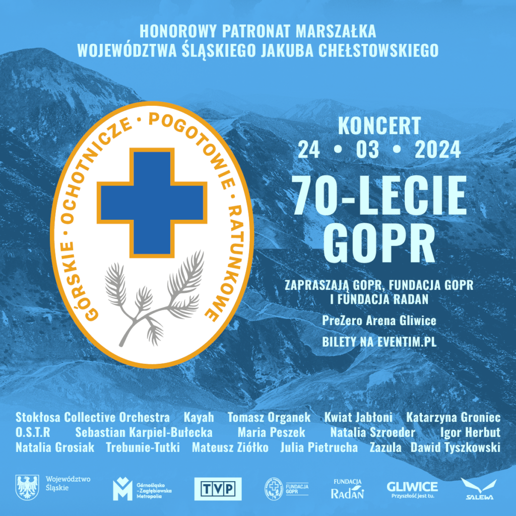 O.S.T.R, Tomasz Organek. Maria Peszek czy Natalia Szroeder – to tylko część gwiazd, które w marcu uświetnią koncert organizowany w PreZero Arenie Gliwice z okazji 70-lecia Górskiego Ochotniczego Pogotowia Ratunkowego. Publiczność będzie świadkiem multimedialno-muzycznej uczty z udziałem popularnych wokalistów i 40-osobowej orkiestry pod batutą Jana Stokłosy. To kontynuacja świętowania jubileuszu, a wydarzenie ma ważny wymiar charytatywny.