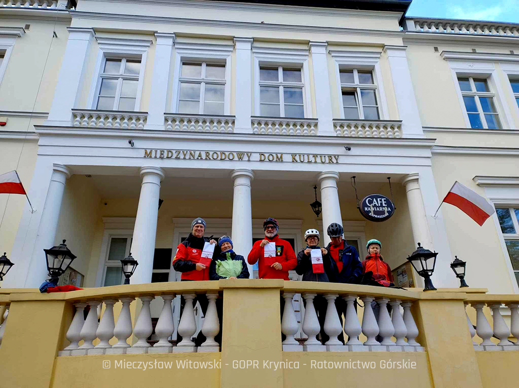 Koleżanki i Koledzy z Grupy Krynickiej, jako mocna grupa rowerowa, na jednej ze swych rowerowych wypraw – odwiedzając Międzyzdroje – otrzymali część najdłuższej FLAGI NARODOWEJ.