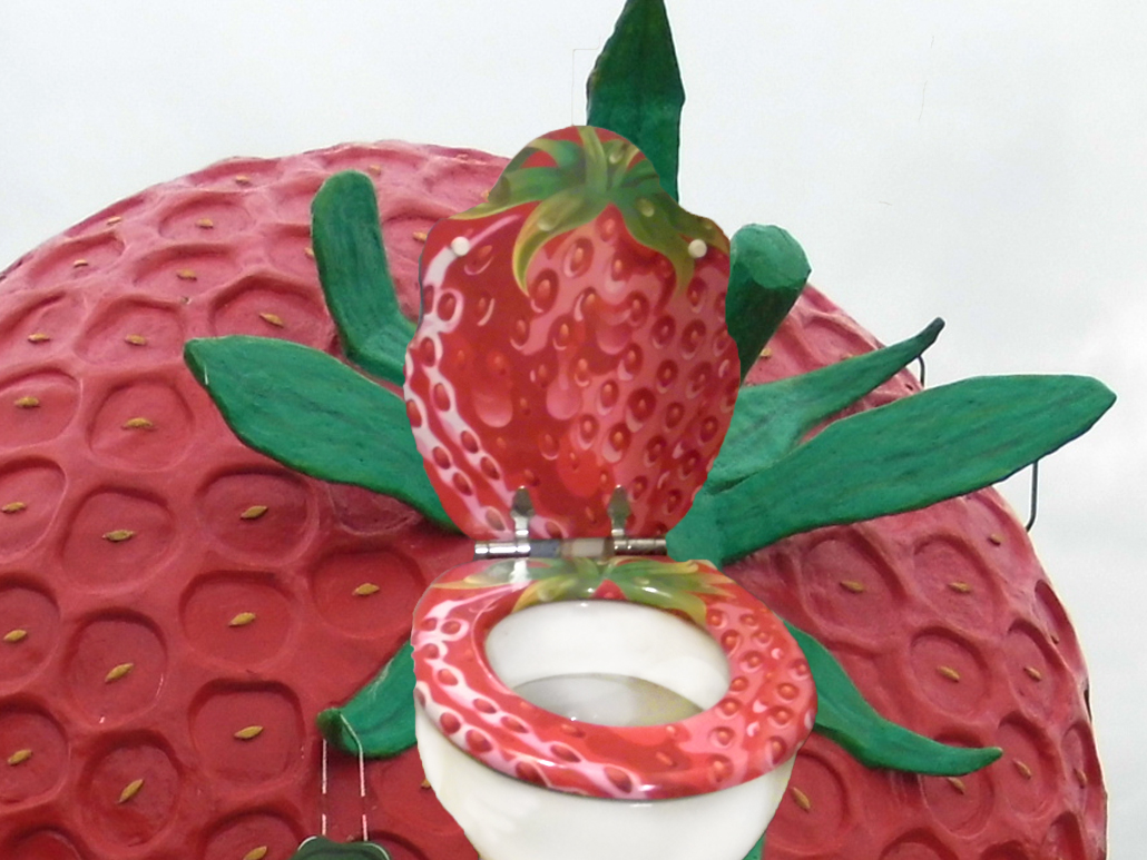 Na zakończenie wycieczki pojechaliśmy do wioski truskawkowej – Karls Erlebnis-Dorf – Koserow, gdzie degustowaliśmy różne produkty truskawkowe. Pobyt w wiosce zakończył się udanymi zakupami. Przypadkiem udało się nam zauważyć, że w wiosce nawet… design toalety jest „truskawkowy”.