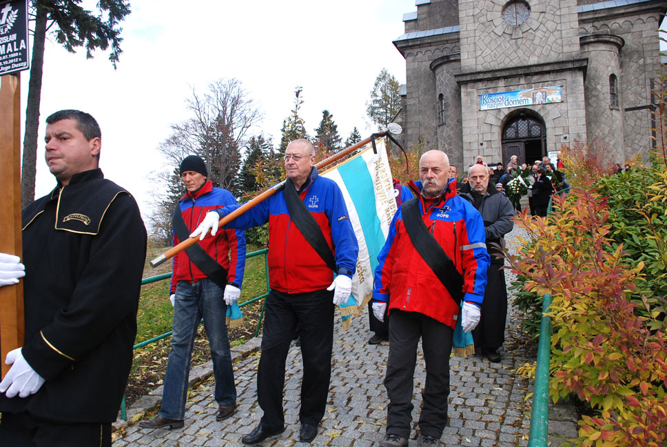 Żegnała Go bliska rodzina, przyjaciele i znajomi. Tym razem karkonoska jesień nie była łaskawa. Zimnem i chmurami żegnała Człowieka, który górom oddał 40 lat swojego życia. Uroczystości żałobne, a przede wszystkim Msza celebrowana przez księży Franciszkanów i kapelana naszej Grupy, ratownika ks.Michała, zmuszała do refleksji nad przemijaniem.