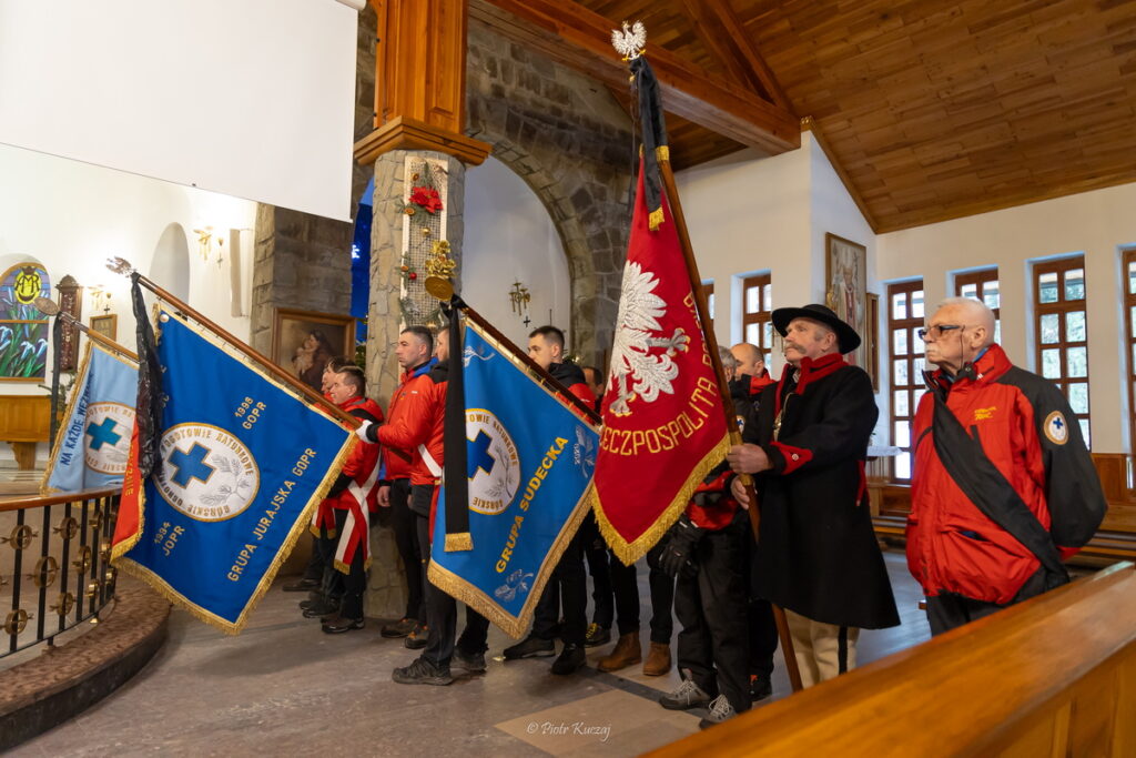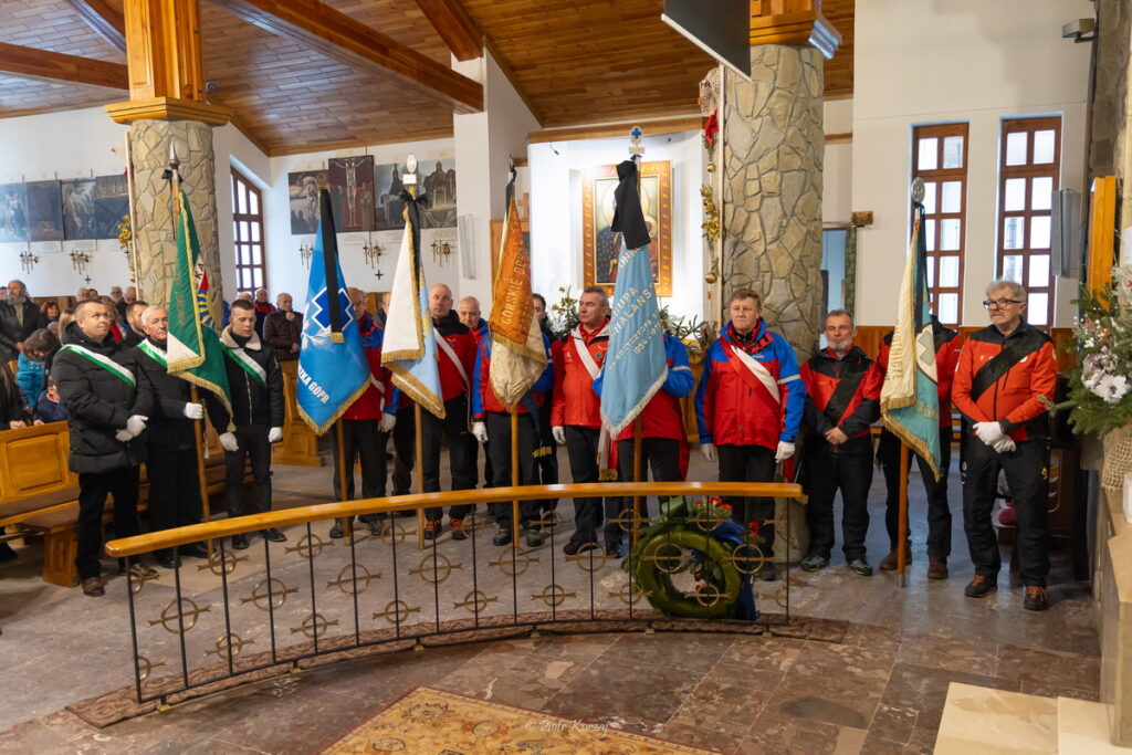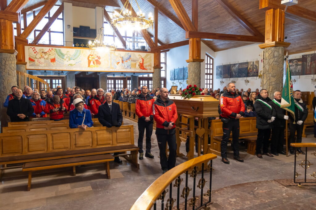 Żegna Cię  kierownictwo i ratownicy TOPR, których obecność wraz z pocztem sztandarowym potwierdza wielki szacunek jakim Cię darzyli.