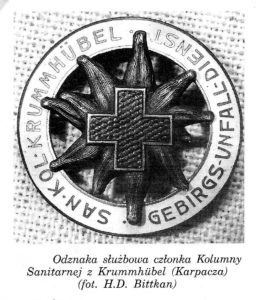 – Kolega Wiktor Szczypka zasugerował, żeby w historii Kolumny Sanitarnej z Karpacza umieścić historię znaczka tej organizacji. (Pierwszą czarno-białą fotografię tego znaczka dostałem w 2005 roku od pana Bittkaua, którego rodzice mieszkali w budynku dzisiejszego przedszkola.) Wiktor przypomina, że w Stacji Centralnej Grupy Karkonoskiej GOPR mamy wspaniałą kolekcję znaczków służb ratowniczych z Polski i Europy. Ale cztery lata poszukiwań znaczka Bergwachtu z dzisiejszego Karpacza do kolekcji, nie dały pozytywnego wyniku i dlatego istniejący przy Grupie Karkonoskiej „Klub Seniora” postanowił zrobić repliki znaczka.