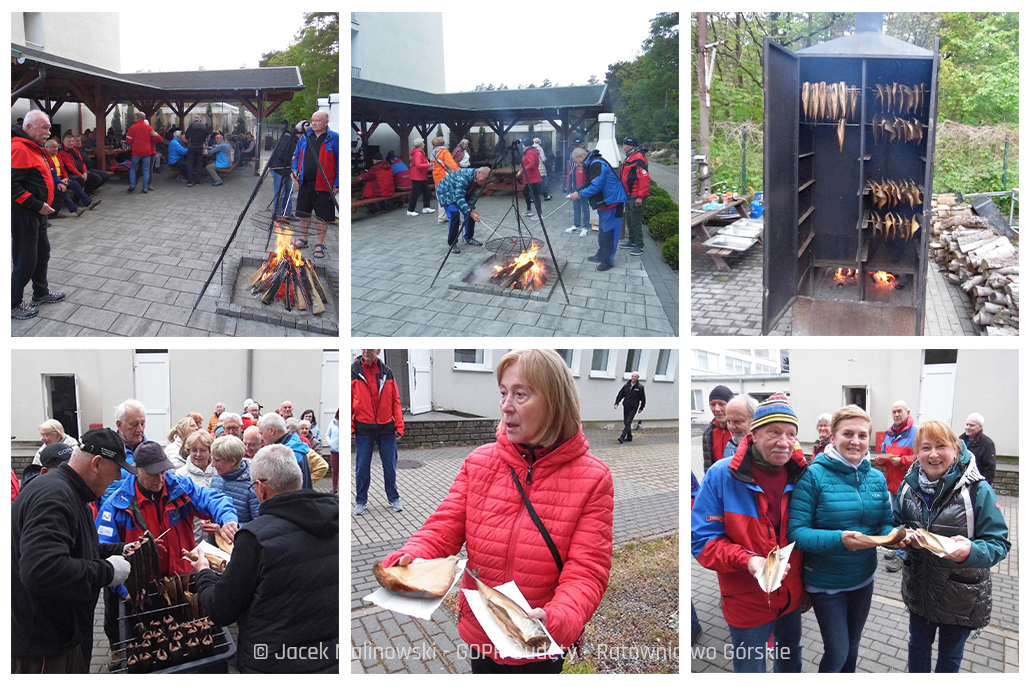 W tym roku właściciel ośrodka zrobił nam niespodziankę kulinarną i osobiście uwędził ryby: flądrę i makrelę, częstując nas nimi wraz ze świeżym „Bosmanem”.