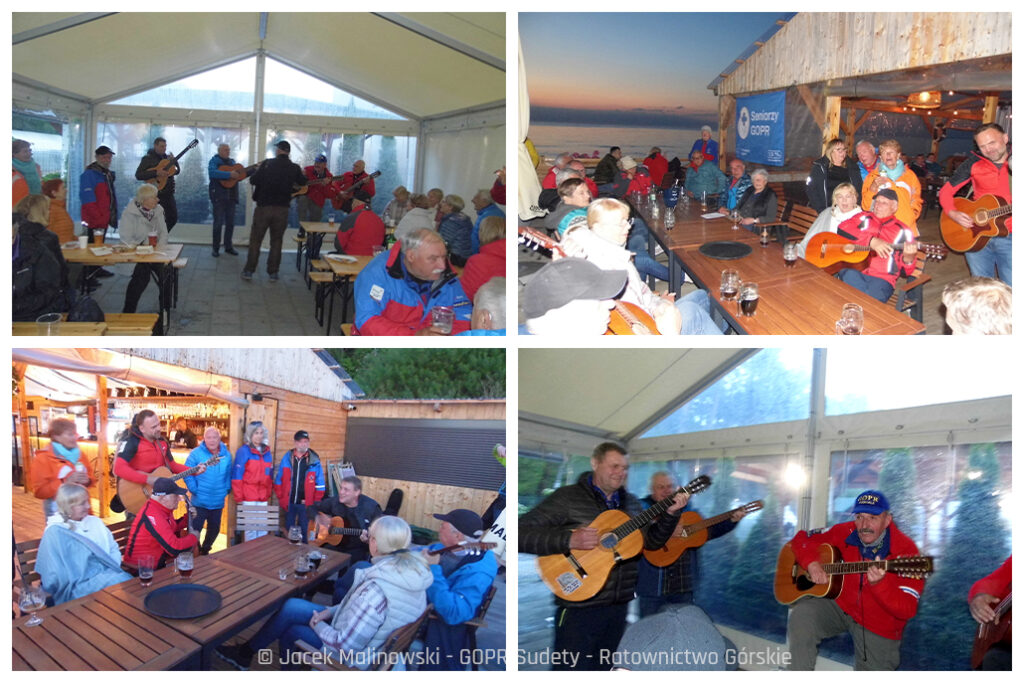 Koncertująca grupa składała się z 4 uczestników wyjazdu i wizytującego nas w Pustkowie Prezesa Fundacji GOPR Janka Wysockiego. Prezes przyćmił pozostałych gitarzystów wielkością swojej gitary i brzmieniem „stalowych” strun dominującym nad pozostałymi instrumentami.
