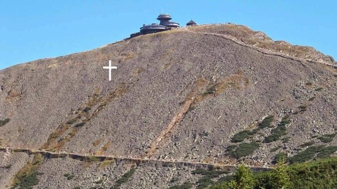 Dla przypomnienia: Śnieżka to jeden z najbardziej wietrznych szczytów w tej części Europy. Pogoda zmienia się tutaj z godziny na godzinę. Szybujący uderzył w miejscu zaznaczonym krzyżem.