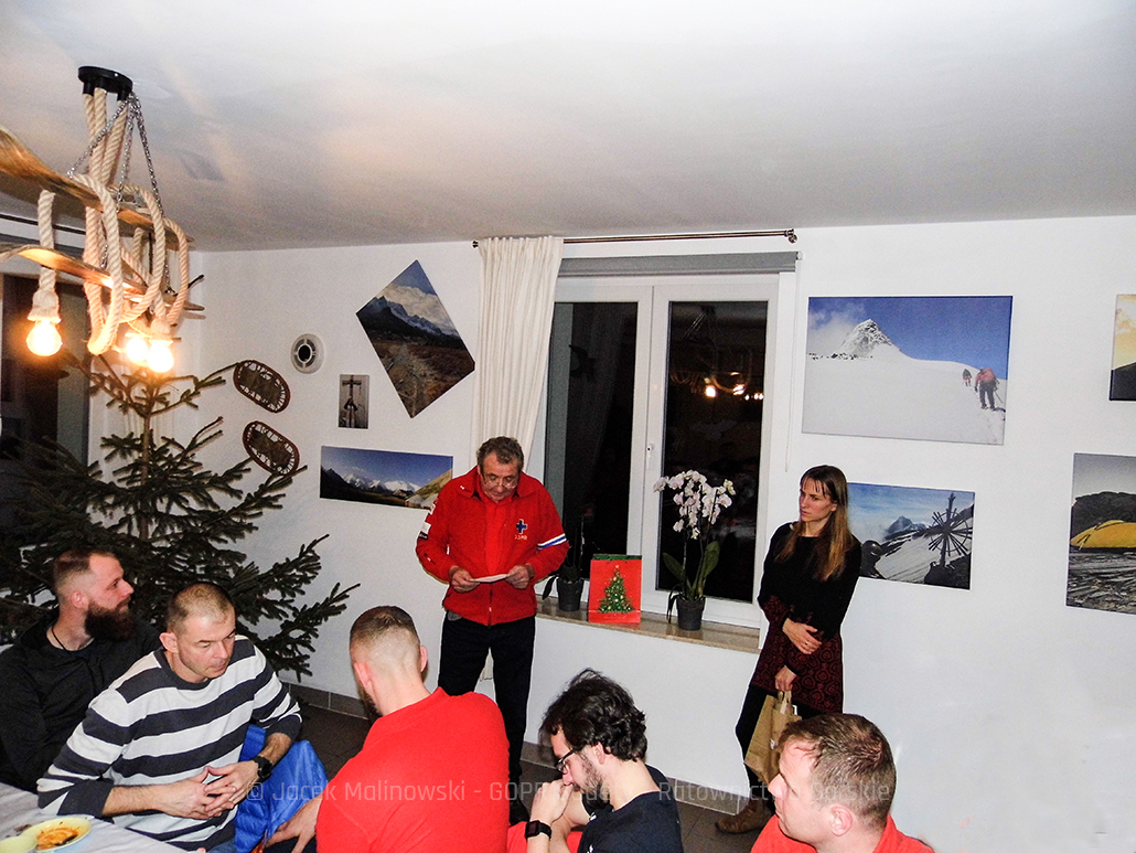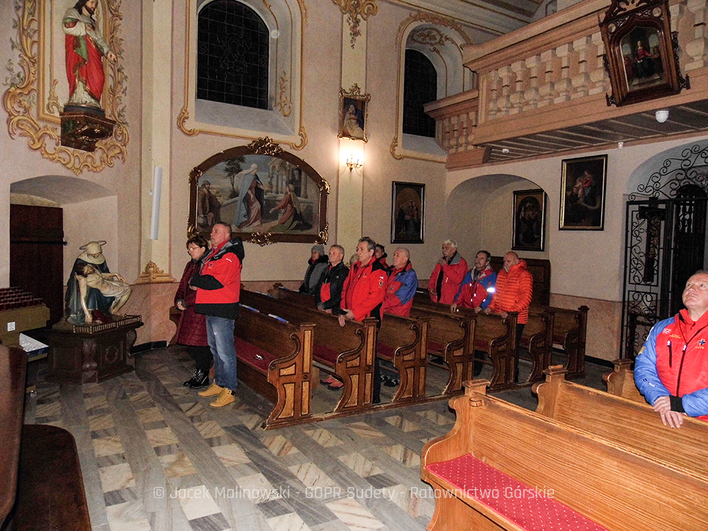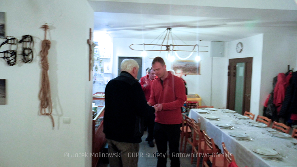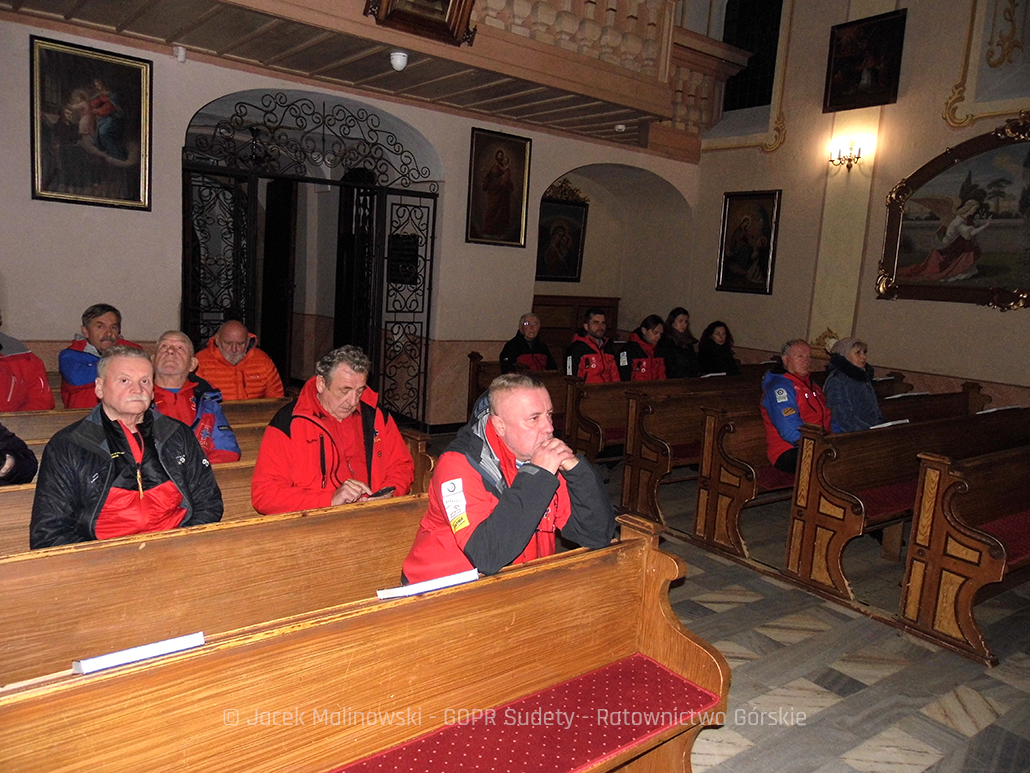 Ratownicy Grupy Sudeckiej, Grupy Karkonoskiej oraz przedstawiciele biura Fundacji GOPR, po mszy św. celebrowanej przez kustosza sanktuarium ks.Wojciecha Iwanickiego, udali się na WIECZERZĘ WIGILIJNĄ do sali znajdującej się w budynku przy Sanktuarium.